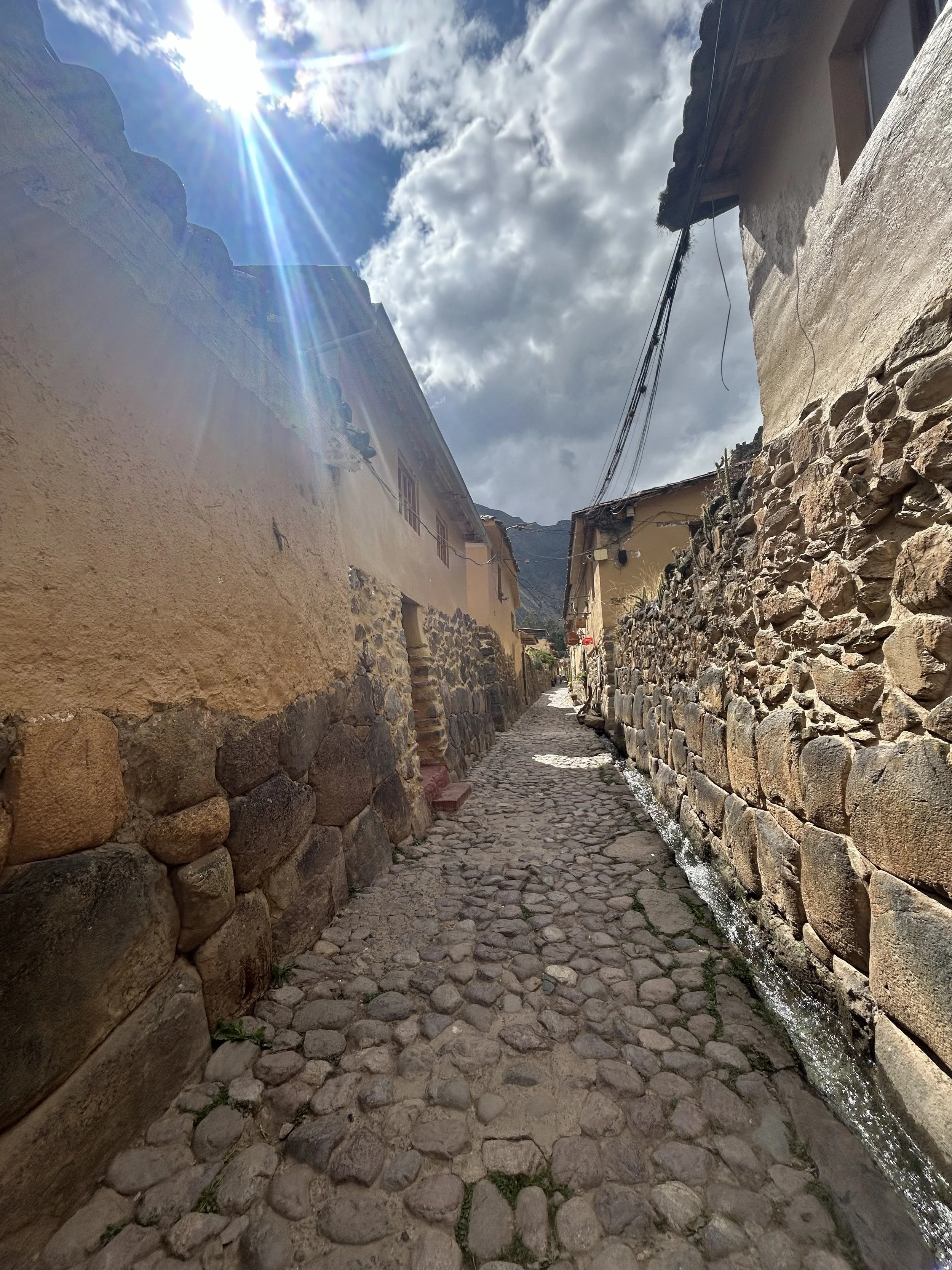 ~ Wandering the quiet and quaint streets with the side small canals, with water flowing, set below the Incan ruins. The character of the cobblestone streets and stone buildings and their durability were remarkable.